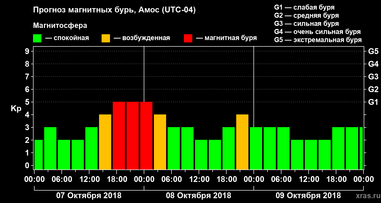 Прогноз магнитных бурь в Амосе на 7 октября 2018 года