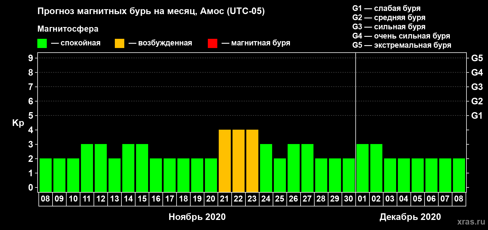 Прогноз магнитных бурь в Амосе — 8 ноября 2020 года