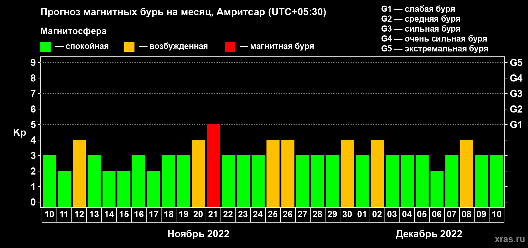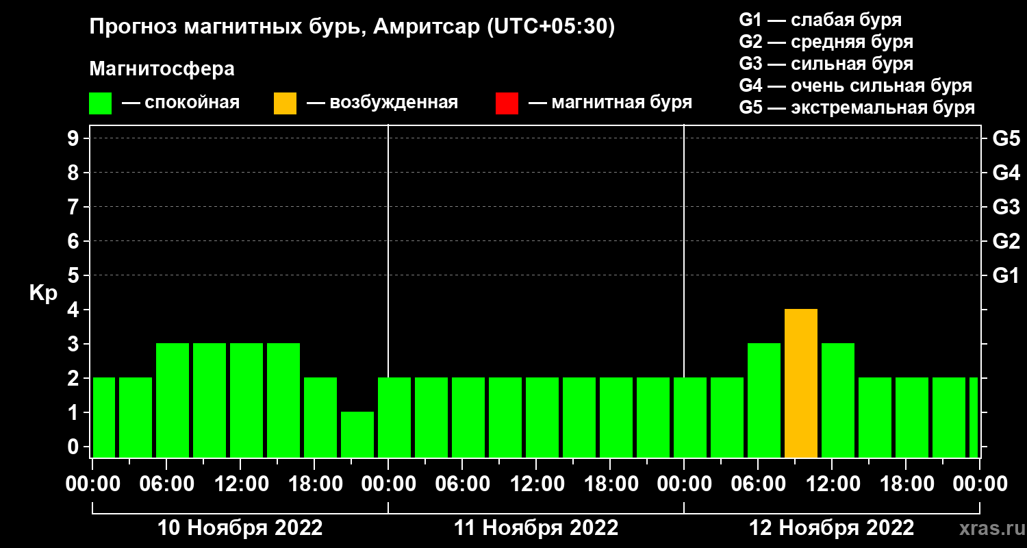 Прогноз магнитных бурь в Амритсаре — 10 ноября 2022 года