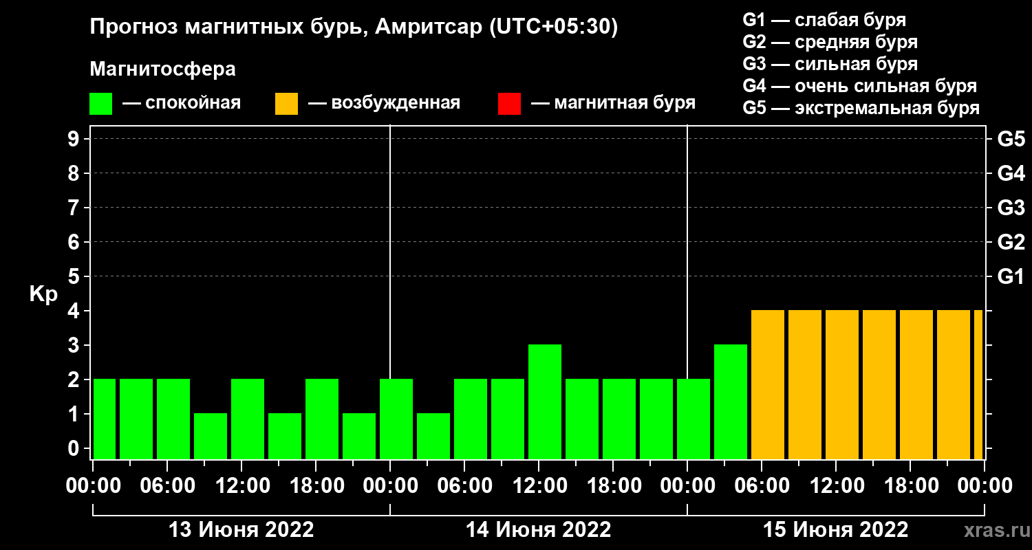 Прогноз магнитных бурь в Амритсаре — 13 июня 2022 года