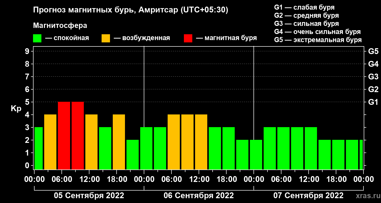 Прогноз магнитных бурь в Амритсаре — 5 сентября 2022 года