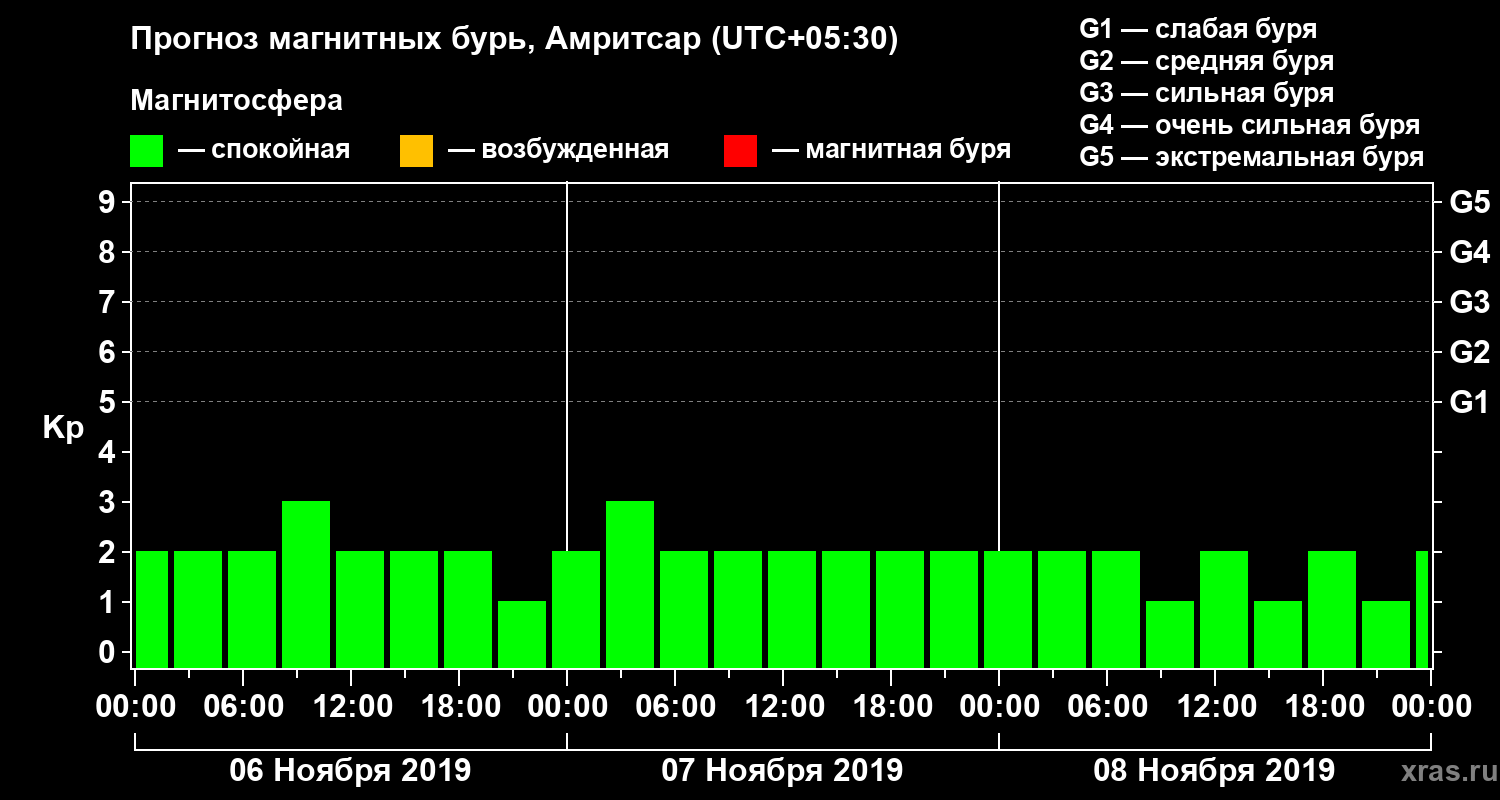 Прогноз магнитных бурь в Амритсаре — 6 ноября 2019 года