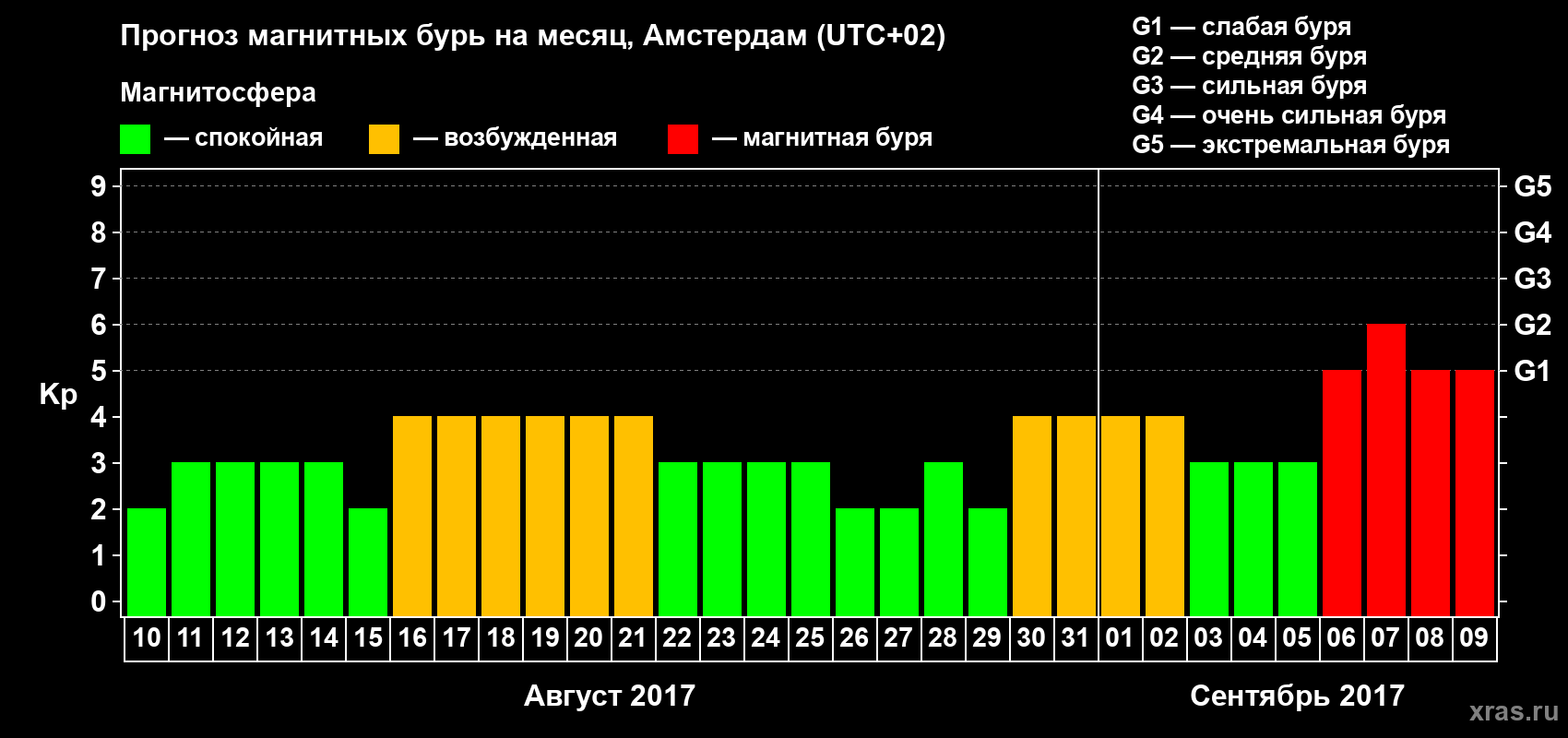 Прогноз магнитных бурь в Амстердаме — 10 августа 2017 года
