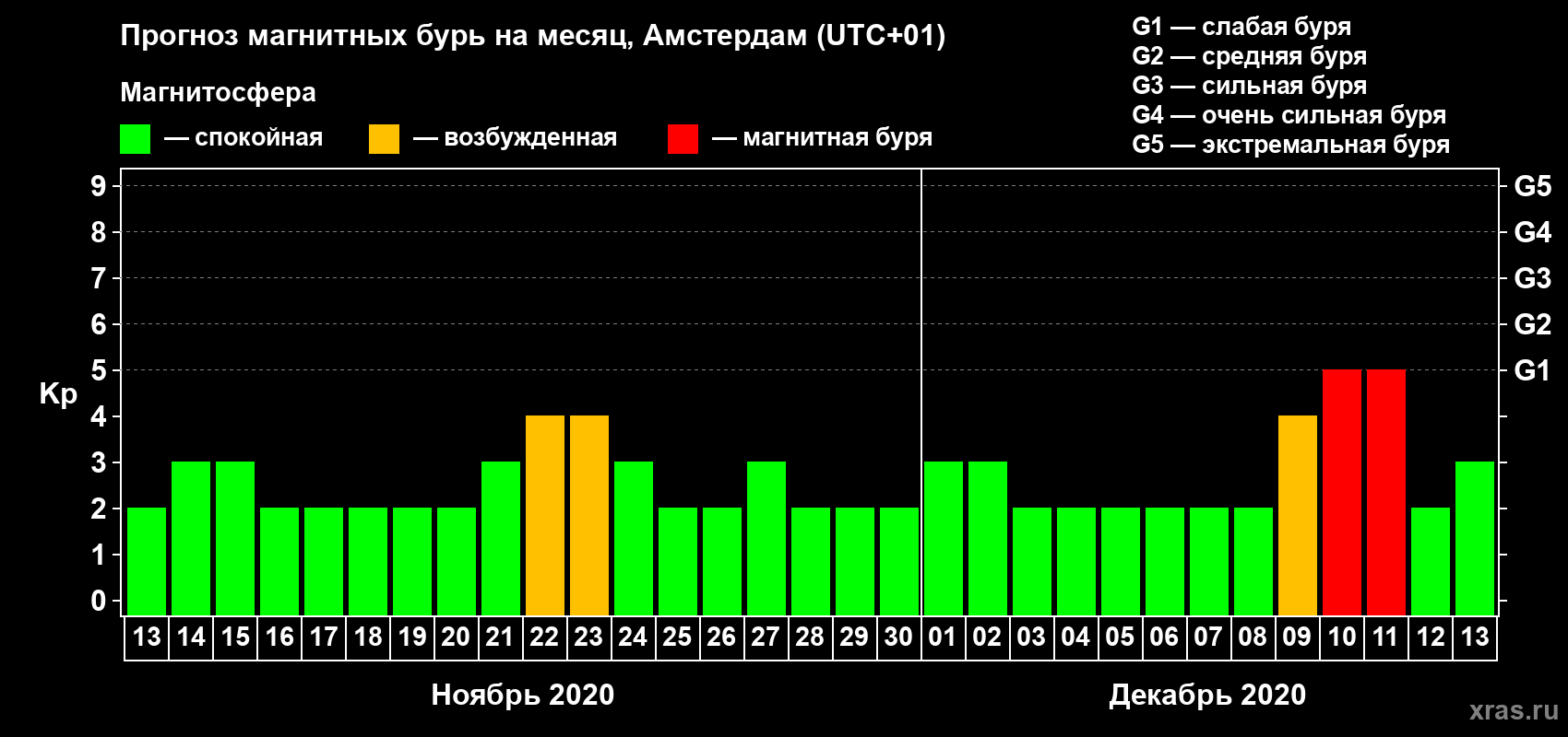 Прогноз магнитных бурь в Амстердаме — 13 ноября 2020 года