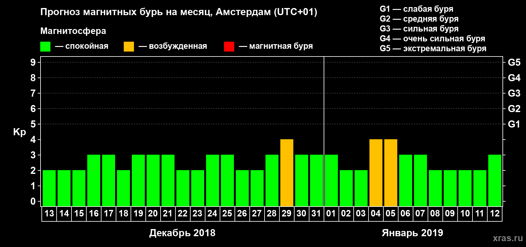 Прогноз магнитных бурь в Амстердаме — 13 декабря 2018 года
