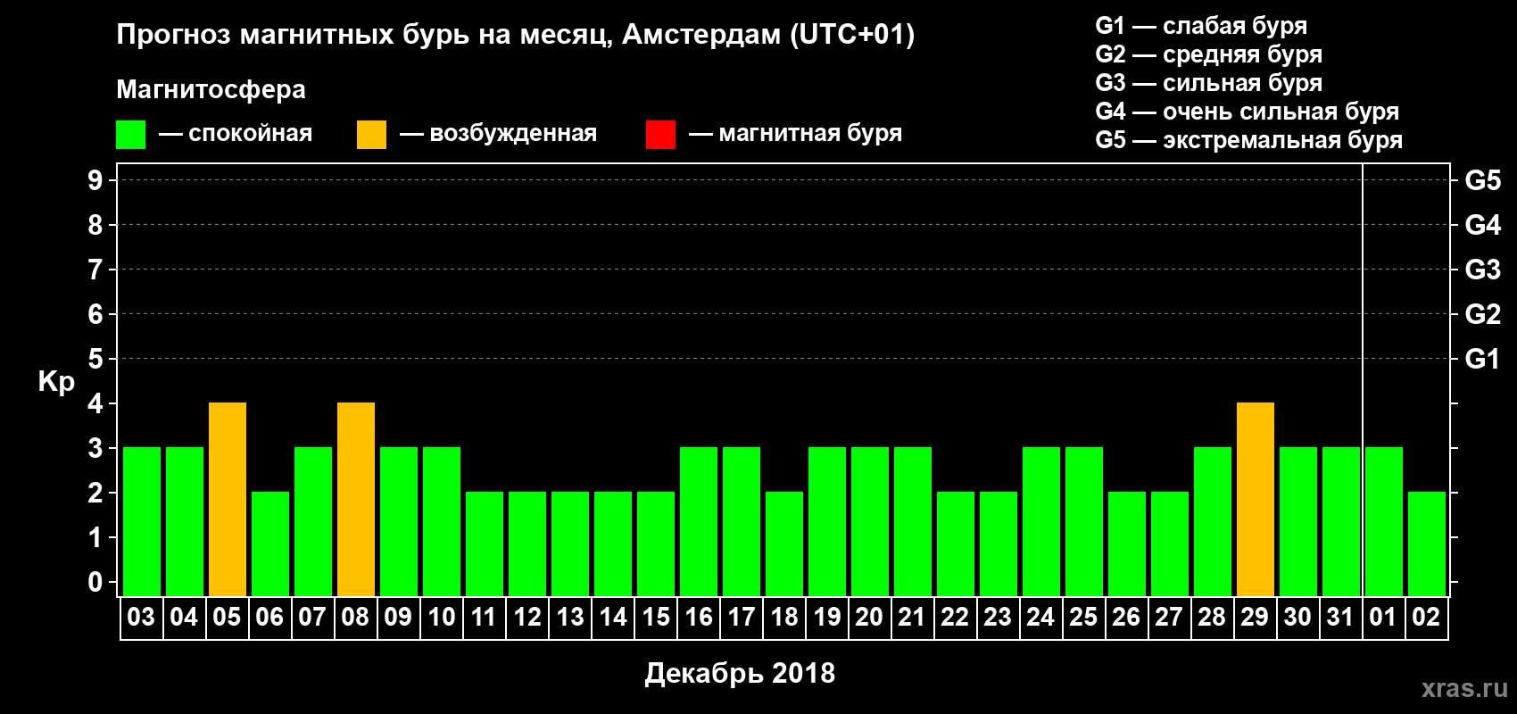 Прогноз магнитных бурь в Амстердаме — 3 декабря 2018 года