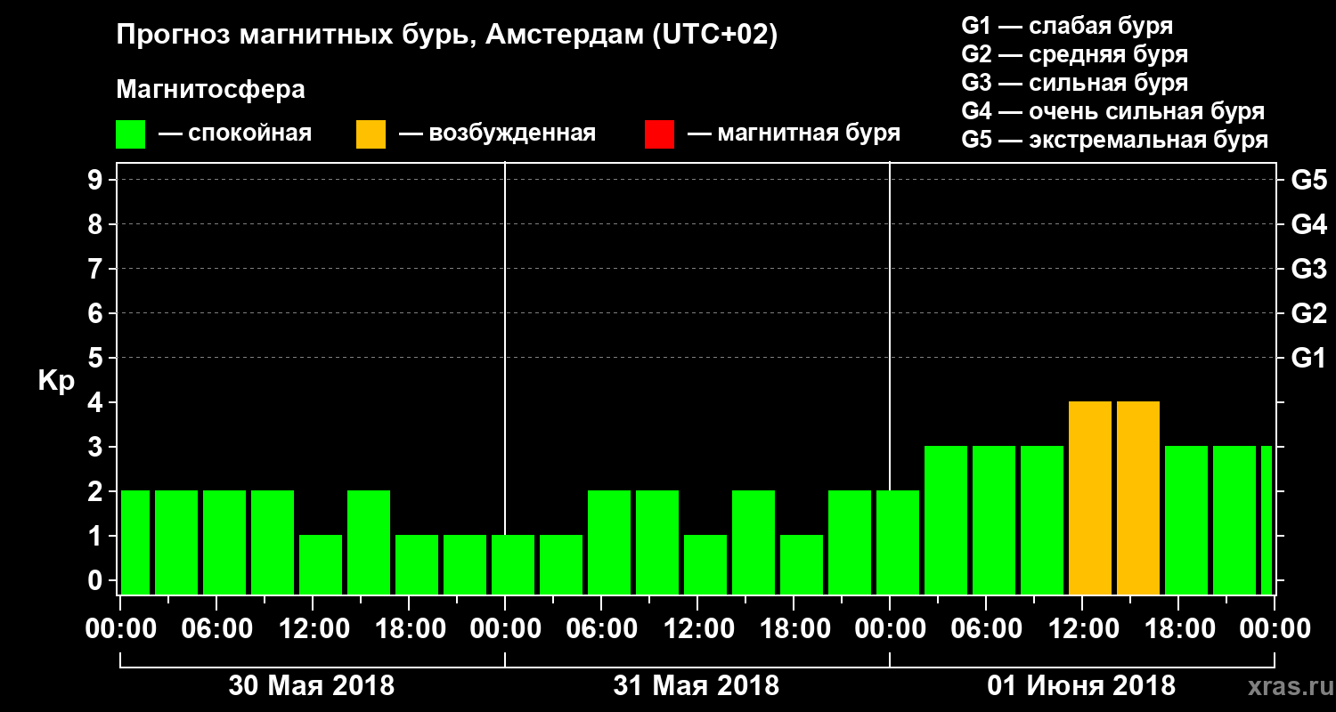 Прогноз магнитных бурь в Амстердаме — 30 мая 2018 года