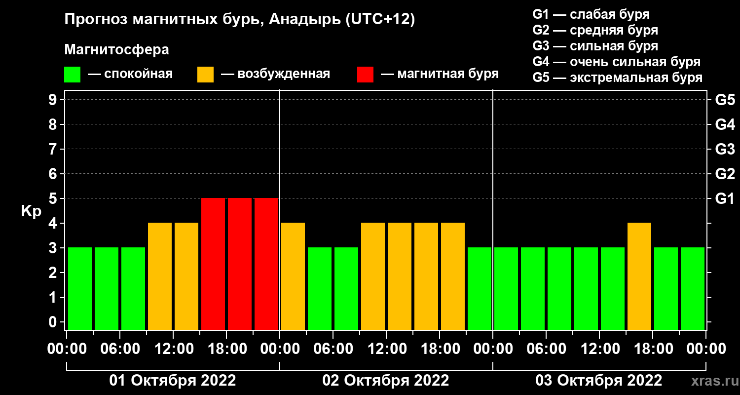 Прогноз магнитных бурь в Анадыре — 1 октября 2022 года