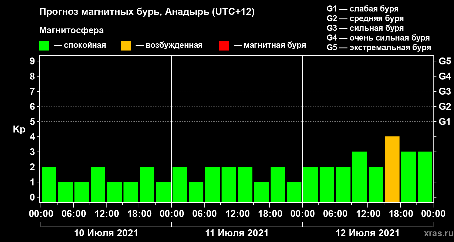 Прогноз магнитных бурь в Анадыре — 10 июля 2021 года