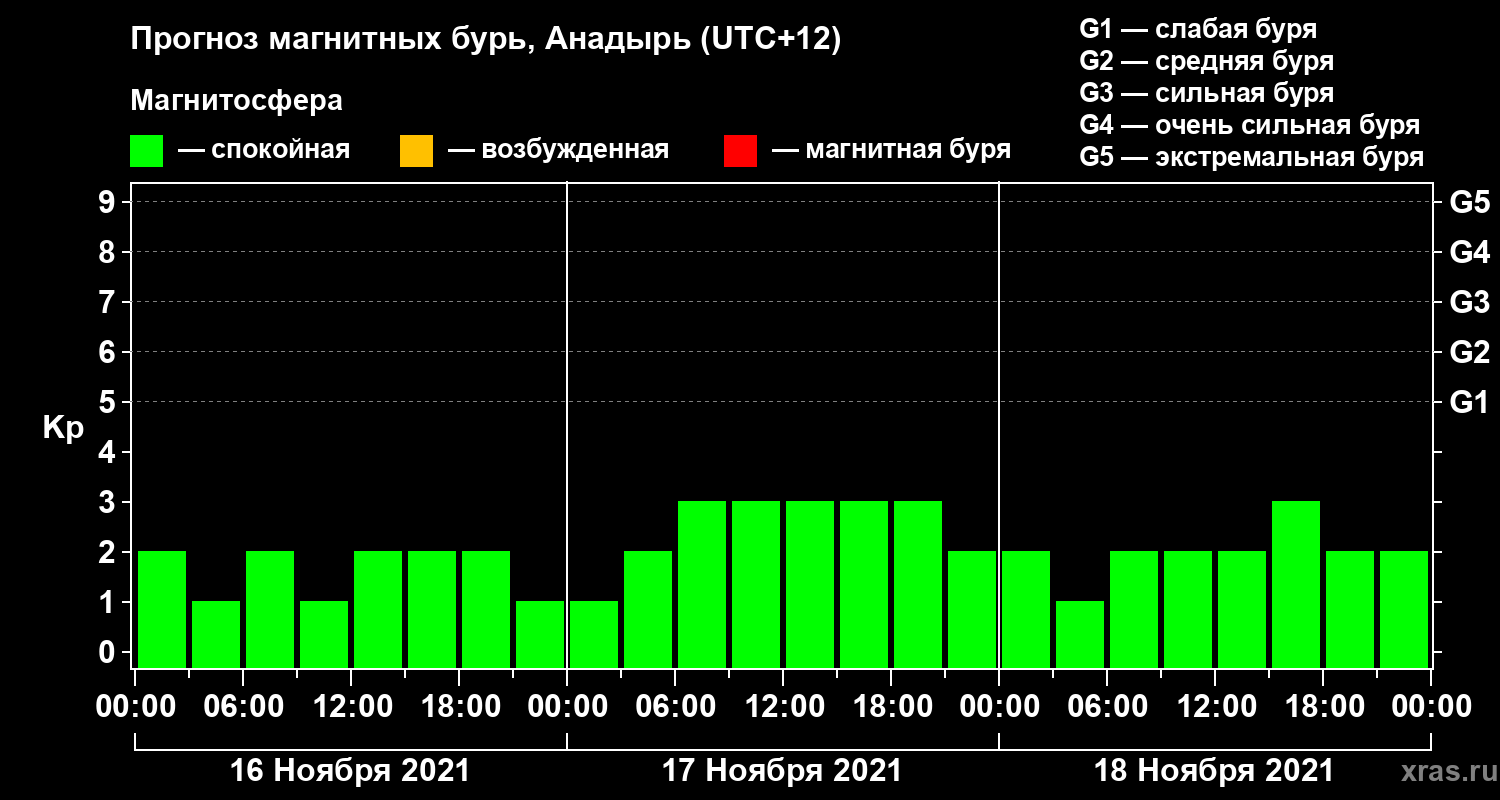 Прогноз магнитных бурь в Анадыре — 16 ноября 2021 года