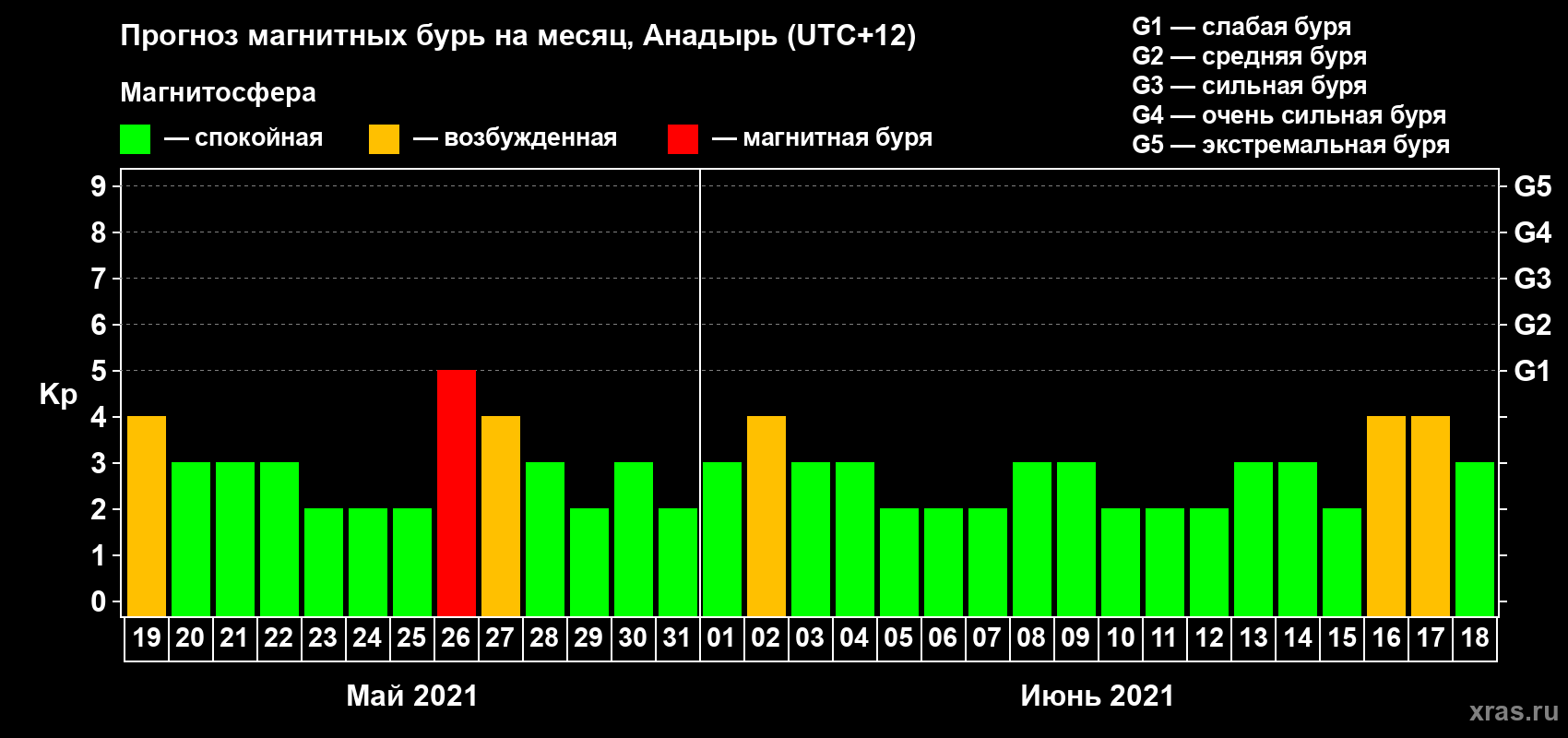 Прогноз магнитных бурь в Анадыре — 19 мая 2021 года
