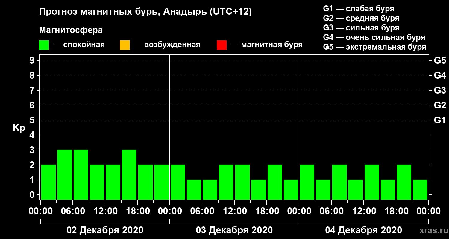 Прогноз магнитных бурь в Анадыре — 2 декабря 2020 года