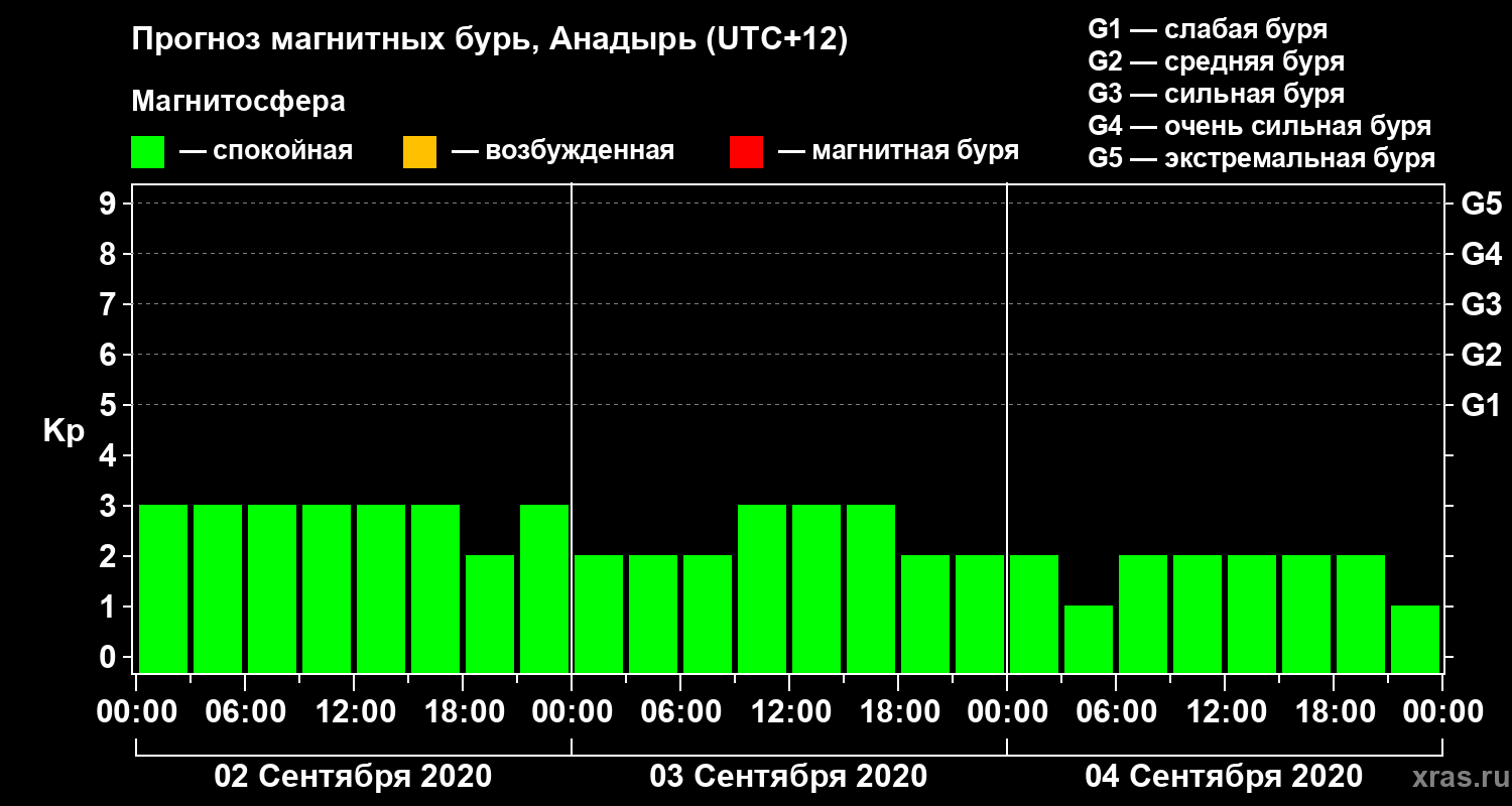 Прогноз магнитных бурь в Анадыре — 2 сентября 2020 года