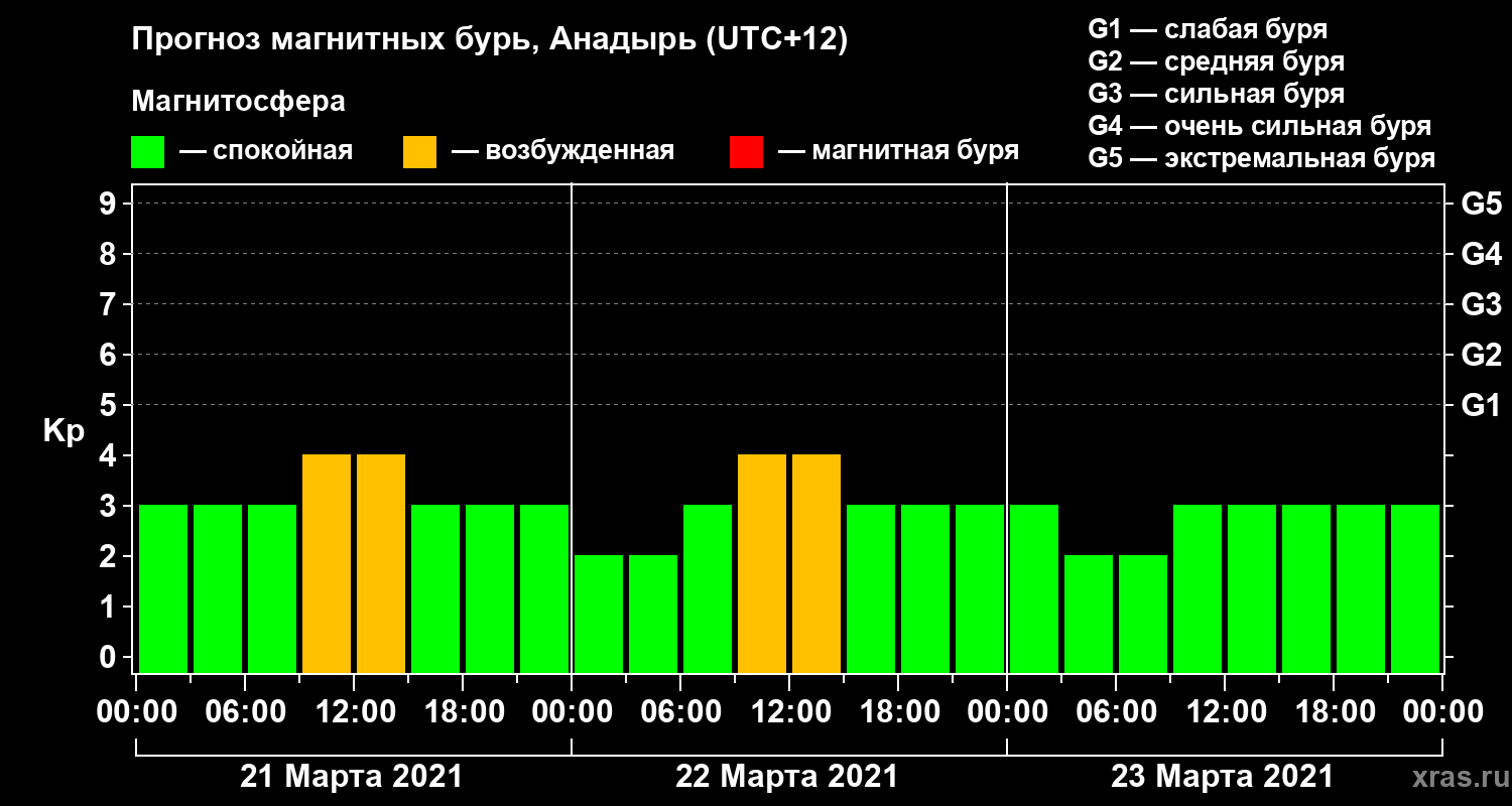 Прогноз магнитных бурь в Анадыре — 21 марта 2021 года