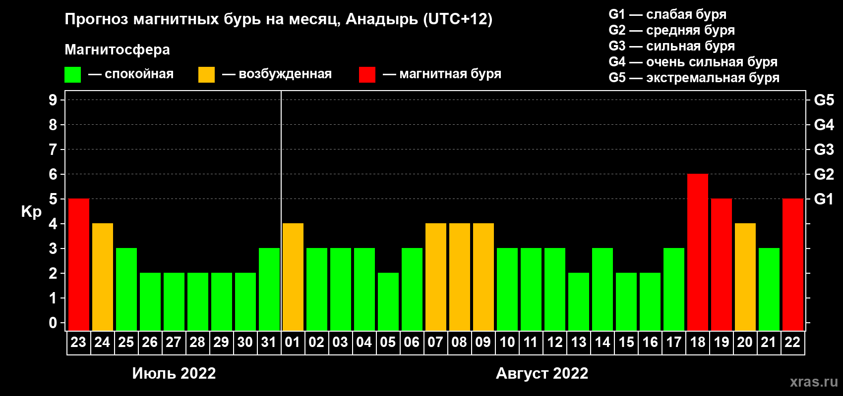 Прогноз магнитных бурь в Анадыре — 23 июля 2022 года