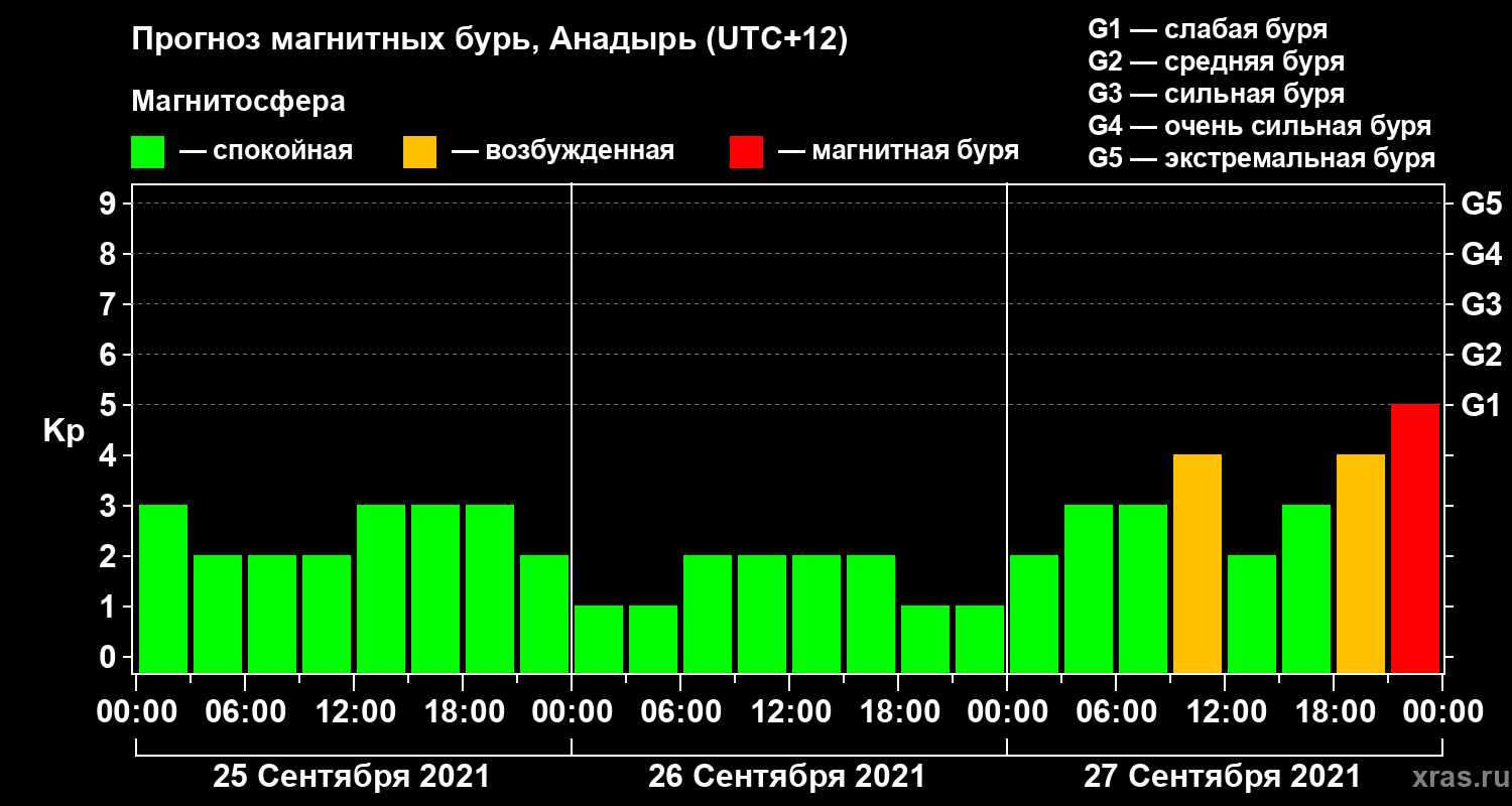 Прогноз магнитных бурь в Анадыре на 25 сентября 2021 года