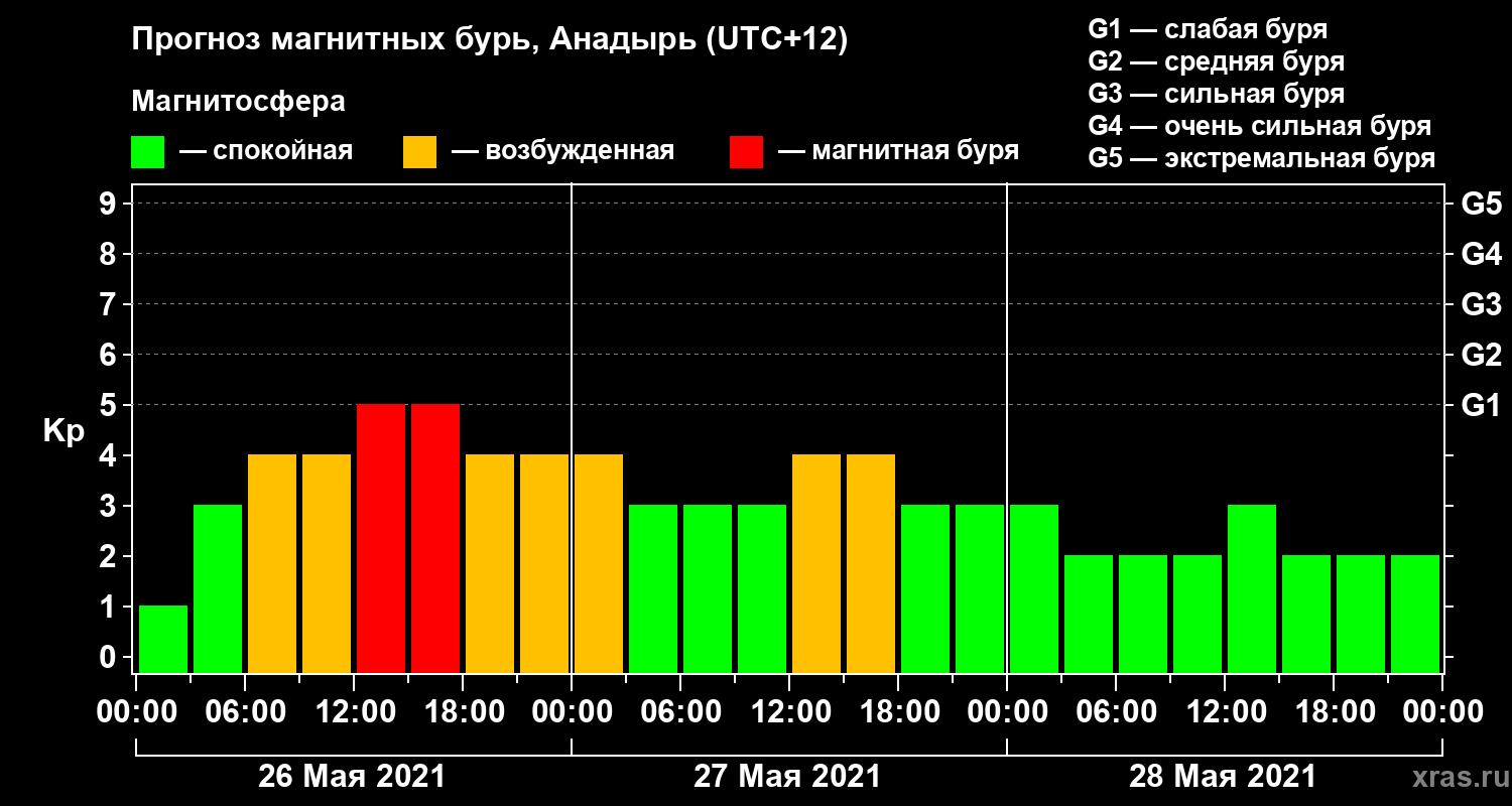 Прогноз магнитных бурь в Анадыре на 26 мая 2021 года