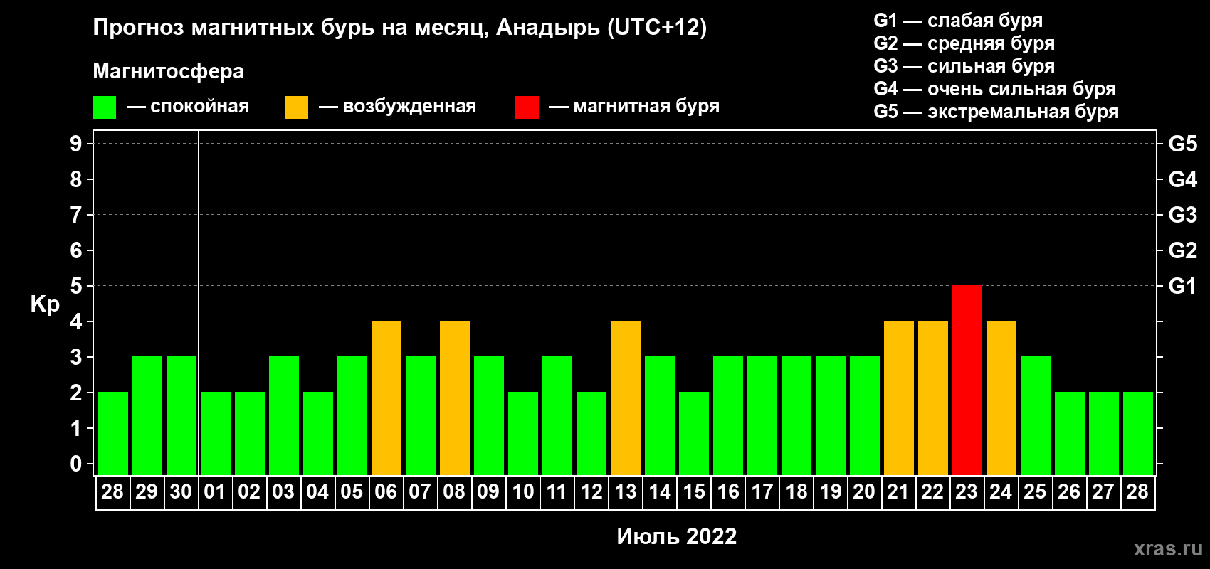 Прогноз магнитных бурь в Анадыре — 28 июня 2022 года