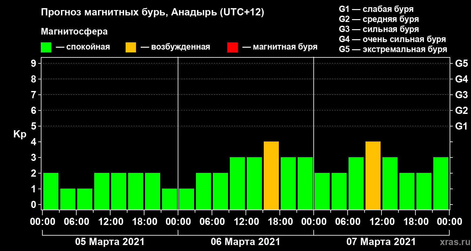 Прогноз магнитных бурь в Анадыре — 5 марта 2021 года
