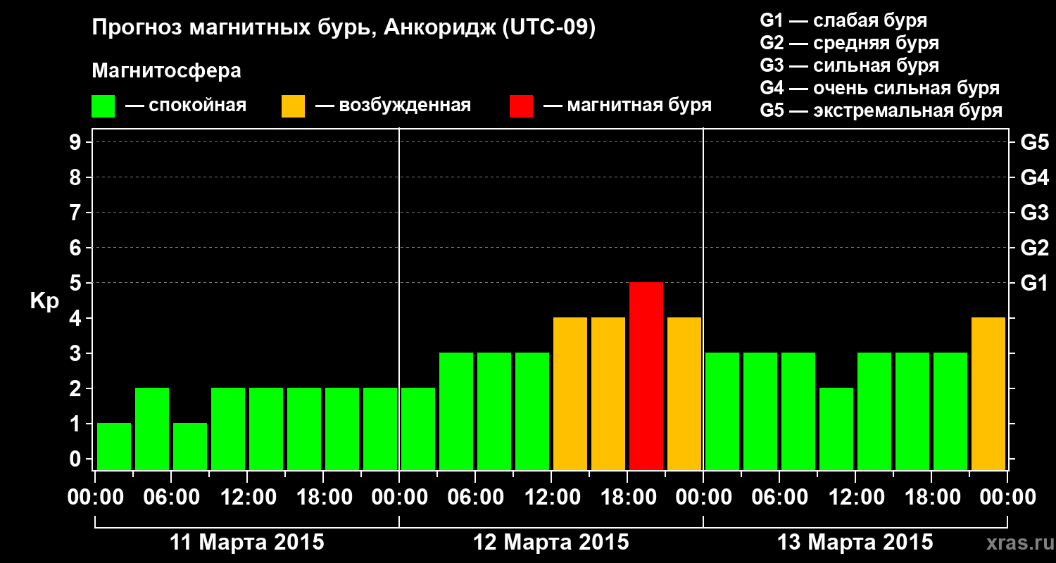 Прогноз магнитных бурь в Анкоридже — 11 марта 2015 года