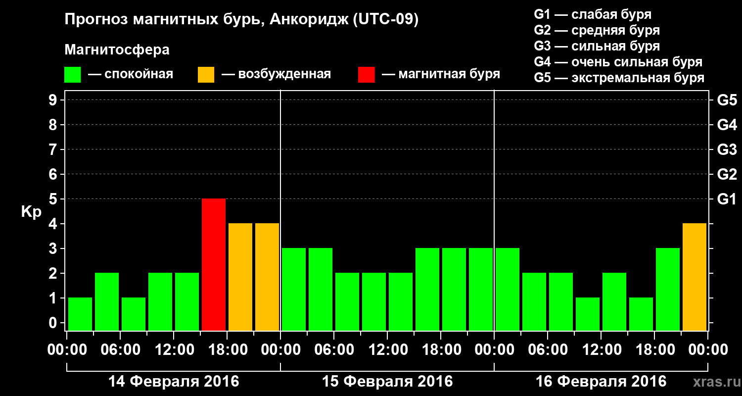 Прогноз магнитных бурь в Анкоридже — 14 февраля 2016 года