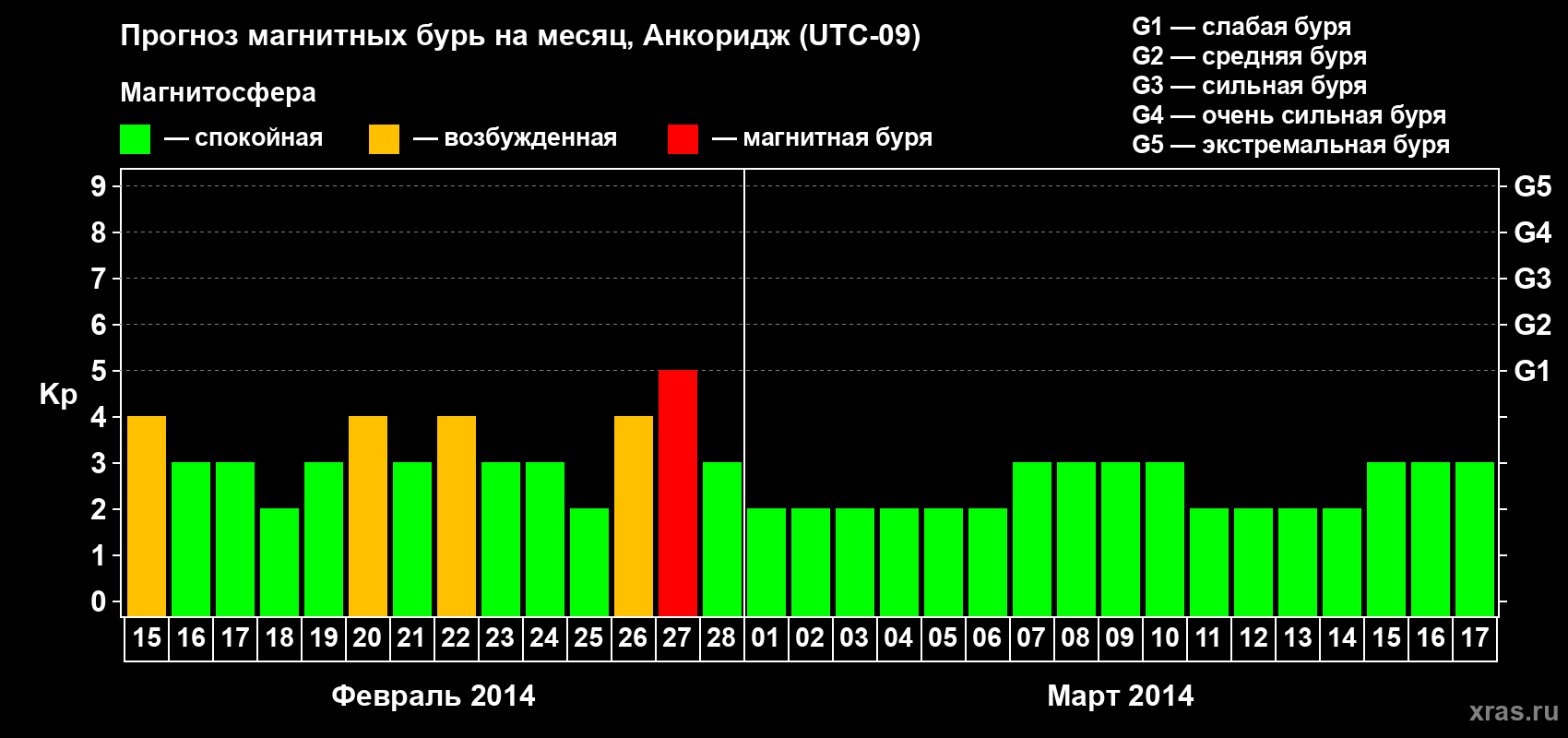 Прогноз магнитных бурь в Анкоридже — 15 февраля 2014 года