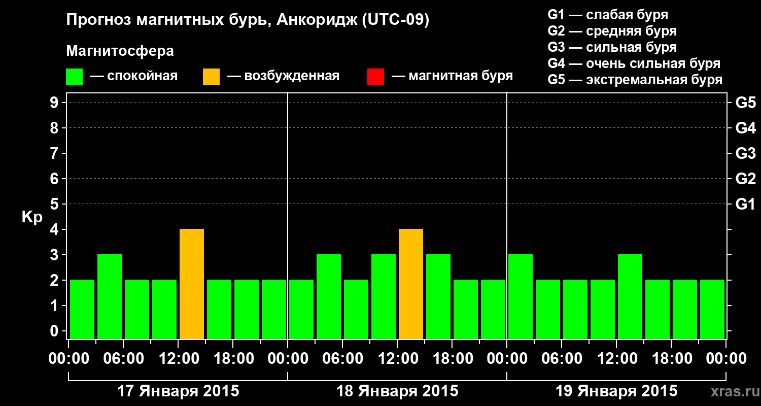 Прогноз магнитных бурь в Анкоридже — 17 января 2015 года