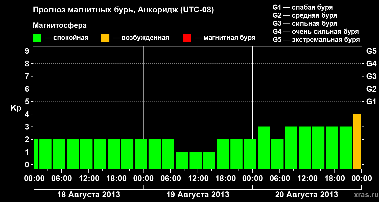 Прогноз магнитных бурь в Анкоридже — 18 августа 2013 года