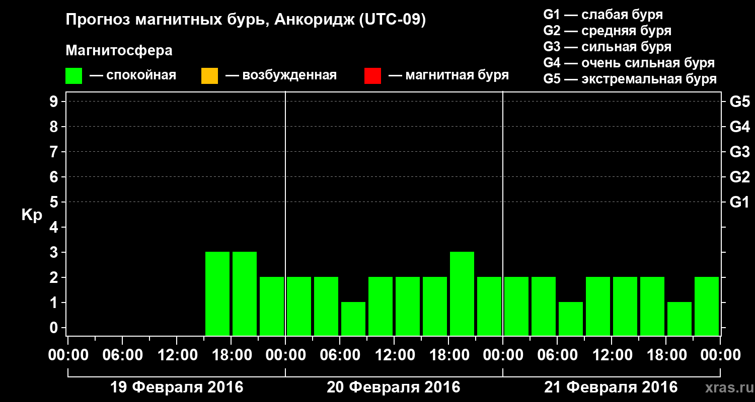 Прогноз магнитных бурь в Анкоридже — 19 февраля 2016 года