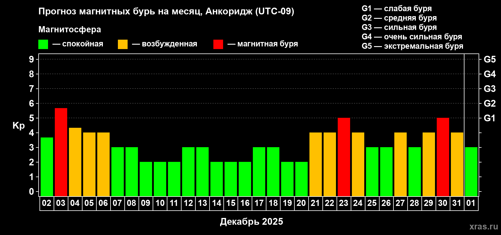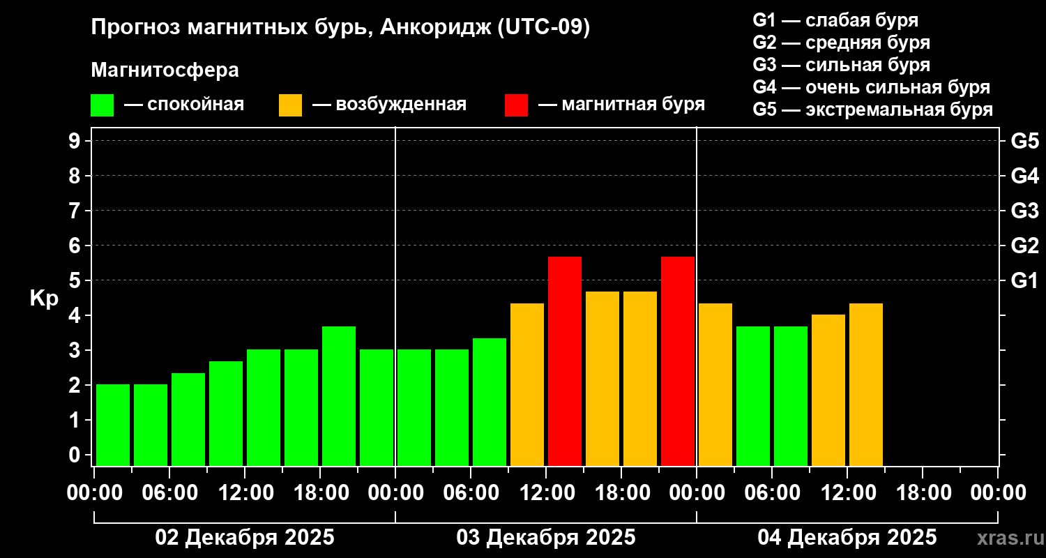 Прогноз магнитных бурь в Анкоридже — 2 декабря 2025 года