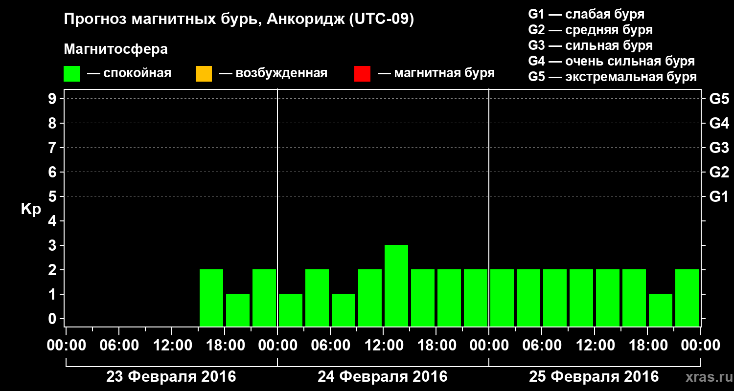 Прогноз магнитных бурь в Анкоридже — 23 февраля 2016 года