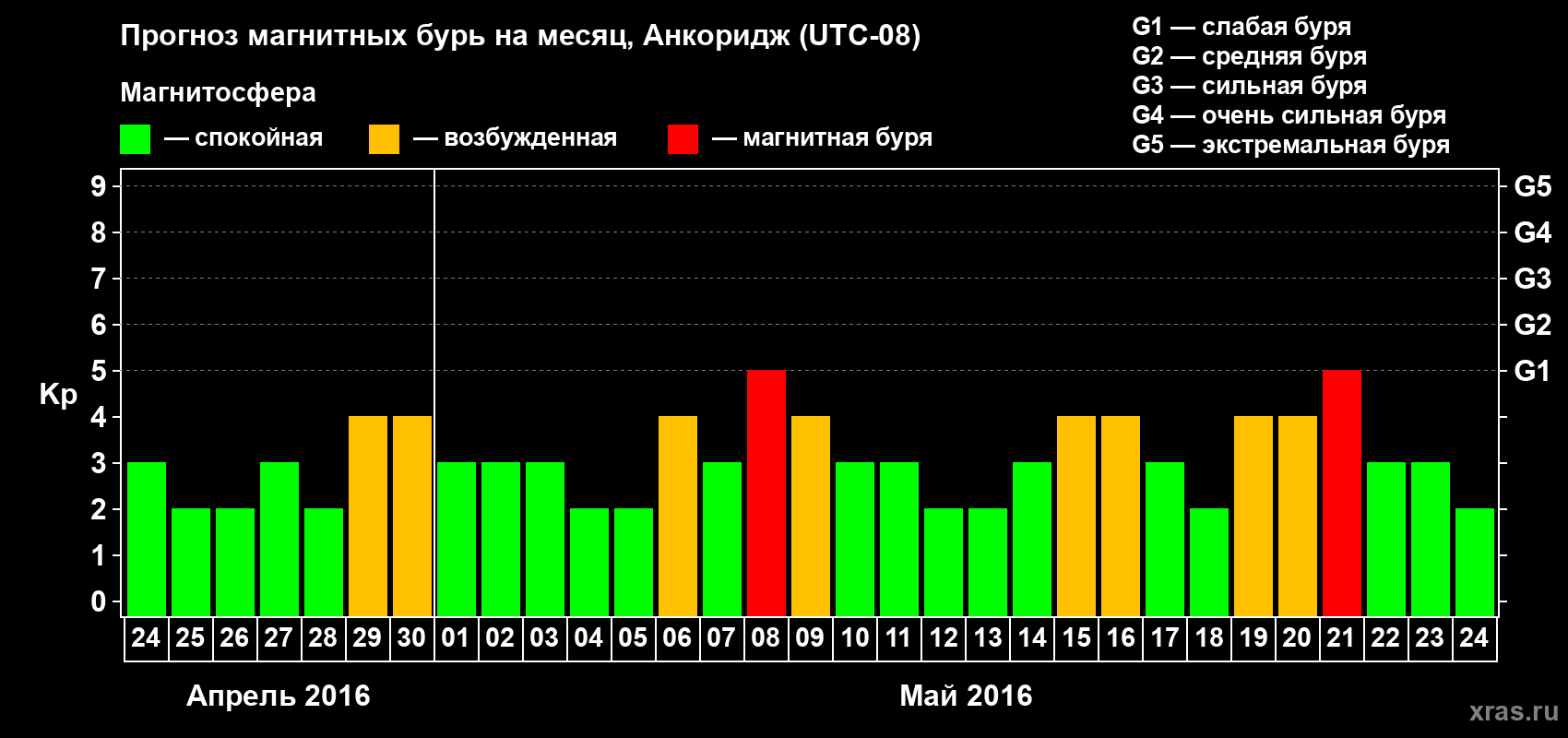Прогноз магнитных бурь в Анкоридже — 24 апреля 2016 года