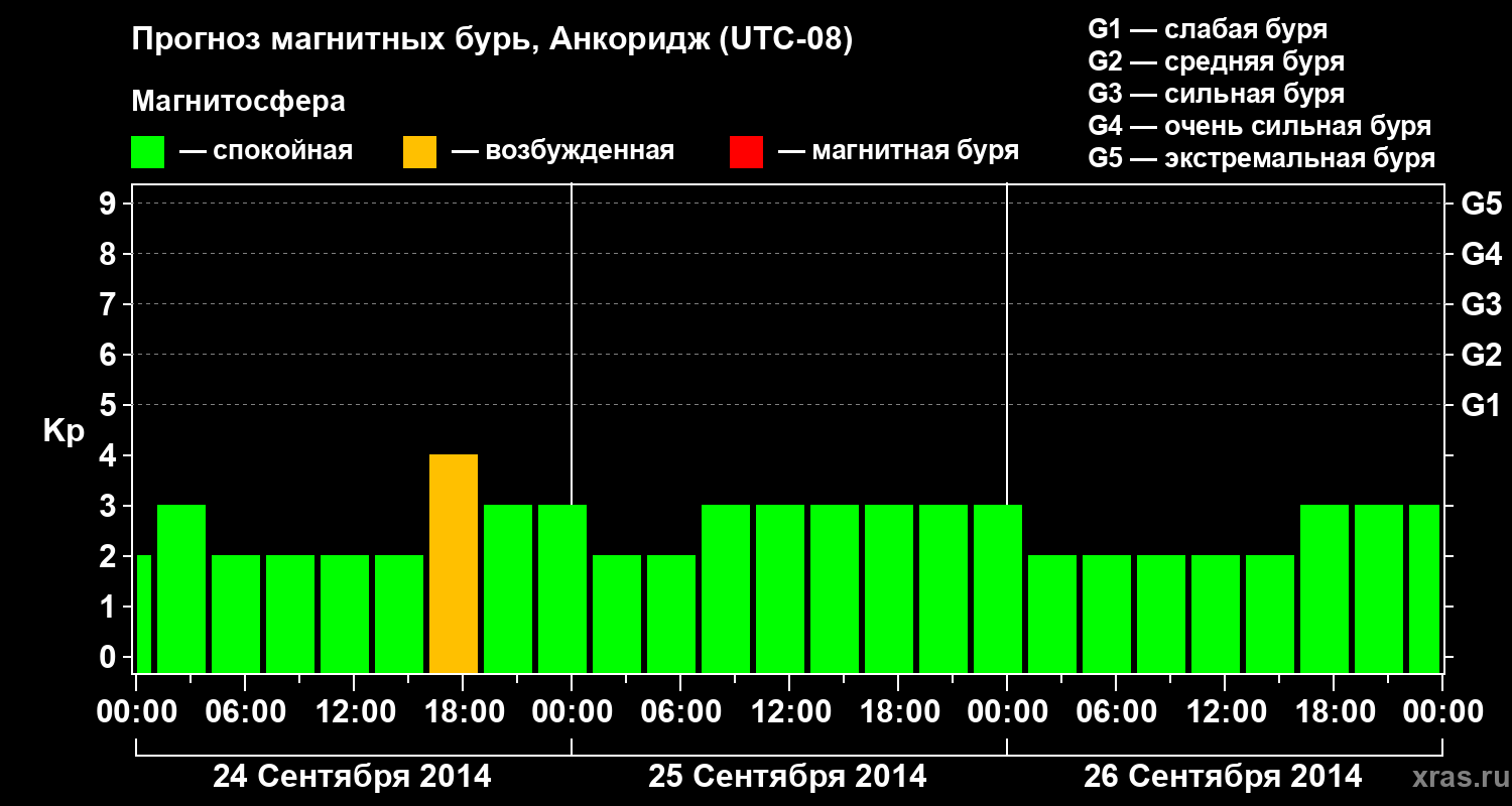 Прогноз магнитных бурь в Анкоридже на 24 сентября 2014 года