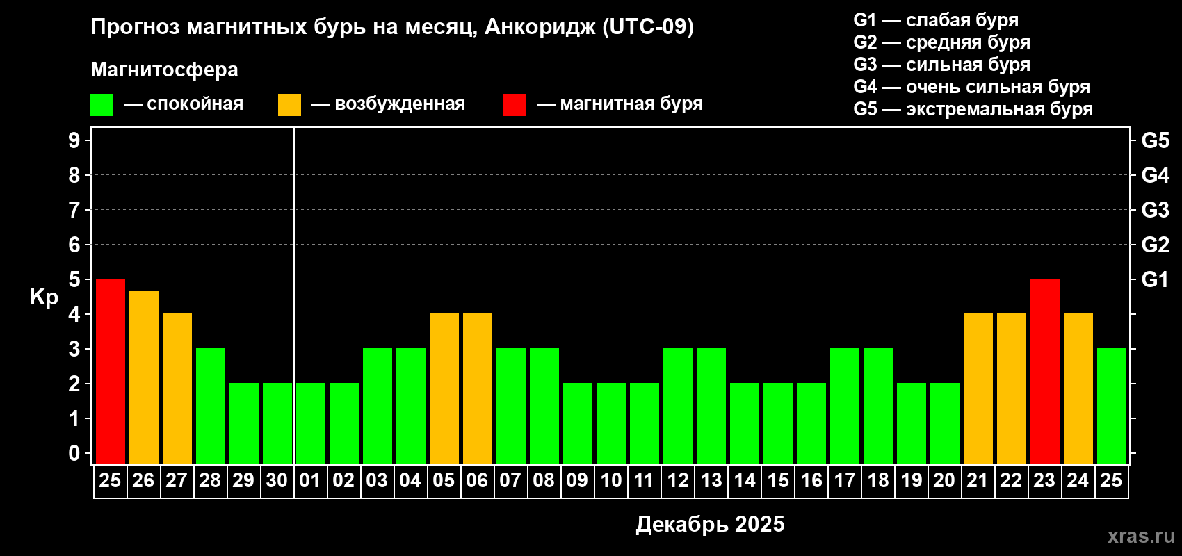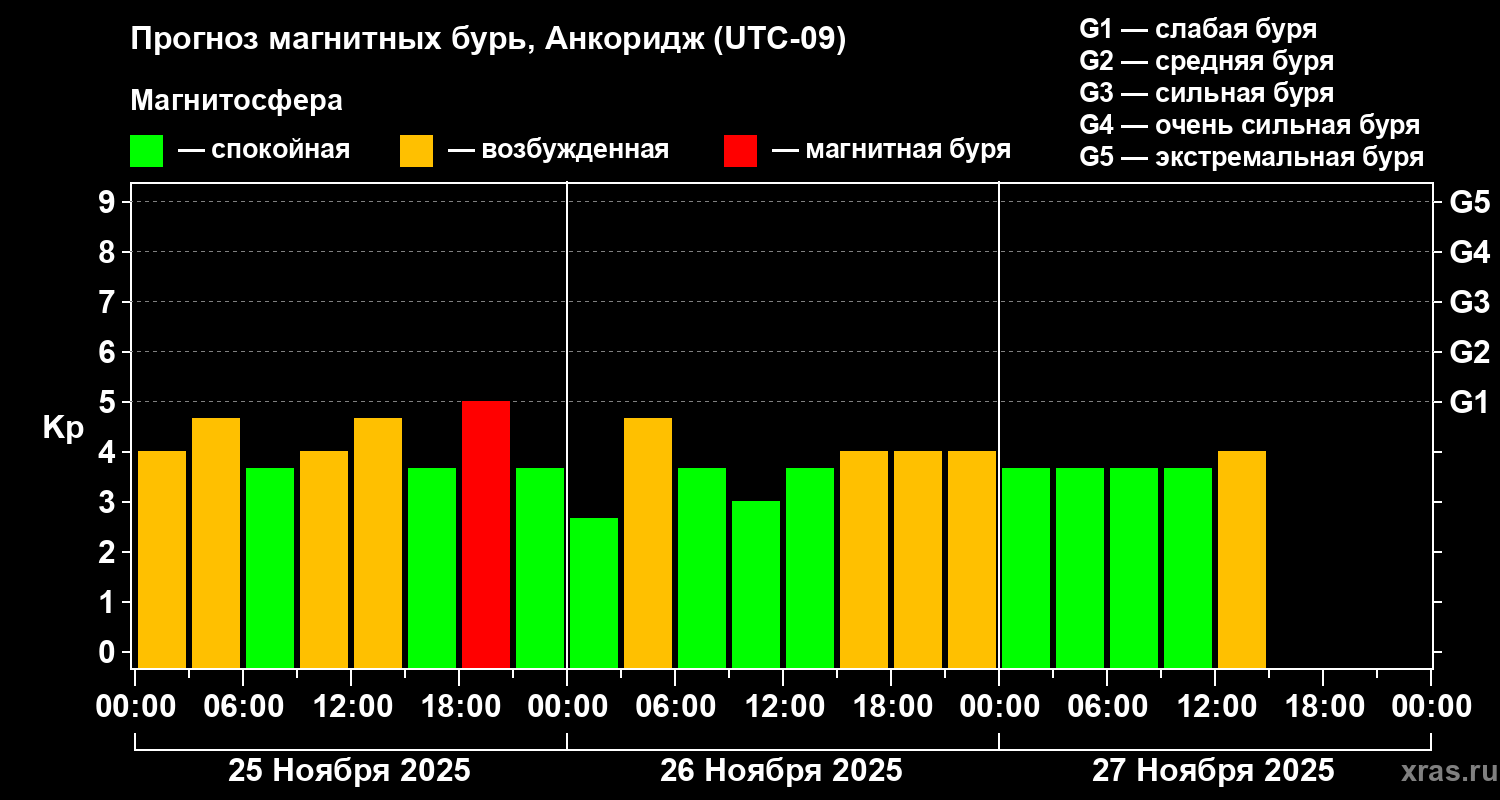 Прогноз магнитных бурь в Анкоридже — 25 ноября 2025 года