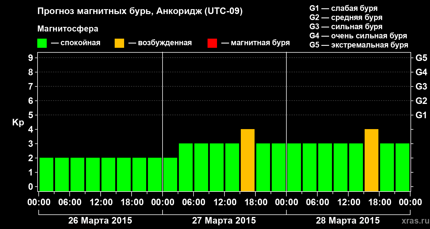Прогноз магнитных бурь в Анкоридже на 26 марта 2015 года