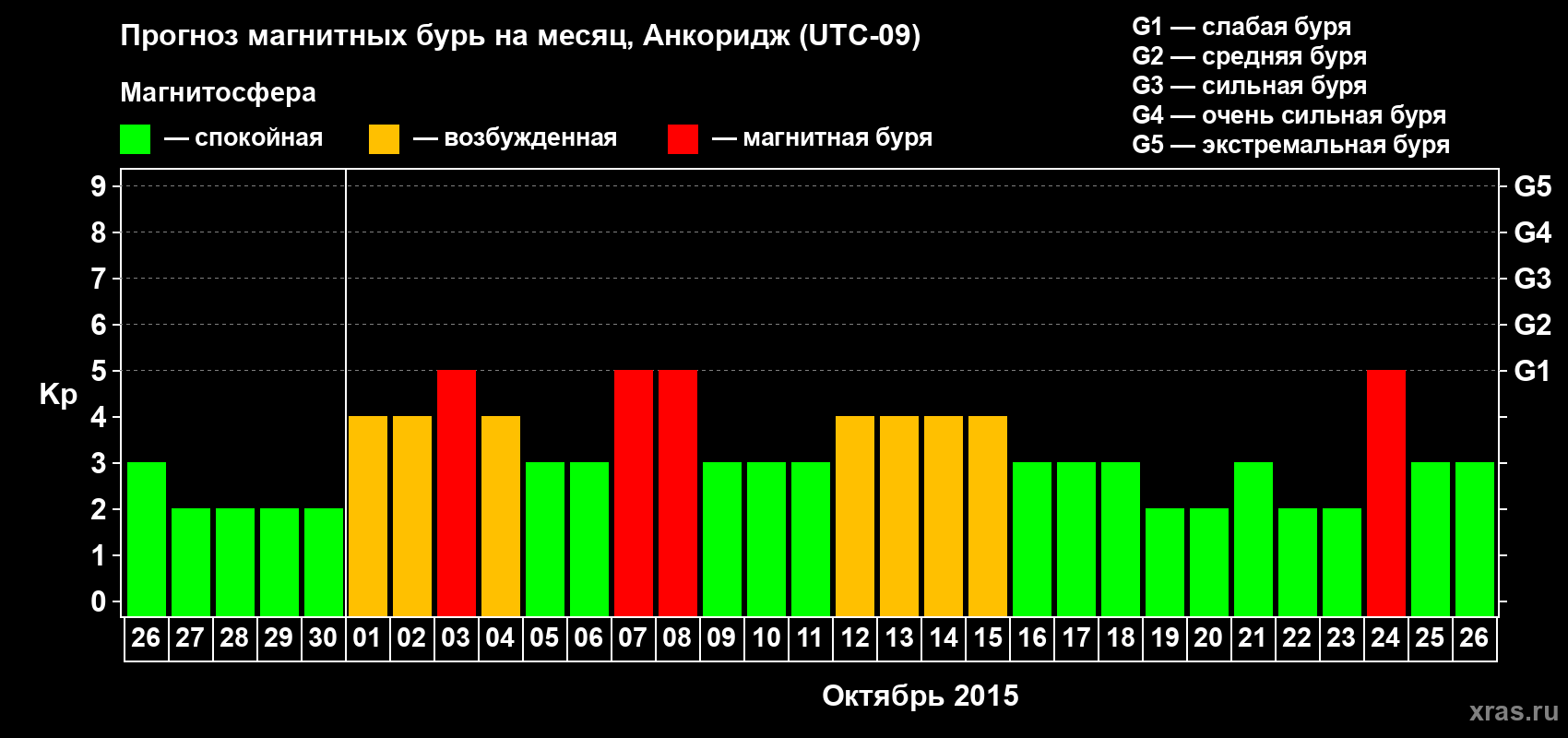 Прогноз магнитных бурь в Анкоридже на 26 сентября 2015 года