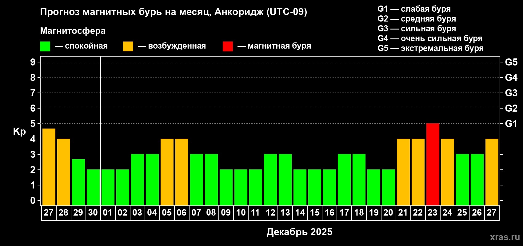 Прогноз магнитных бурь в Анкоридже — 27 ноября 2025 года