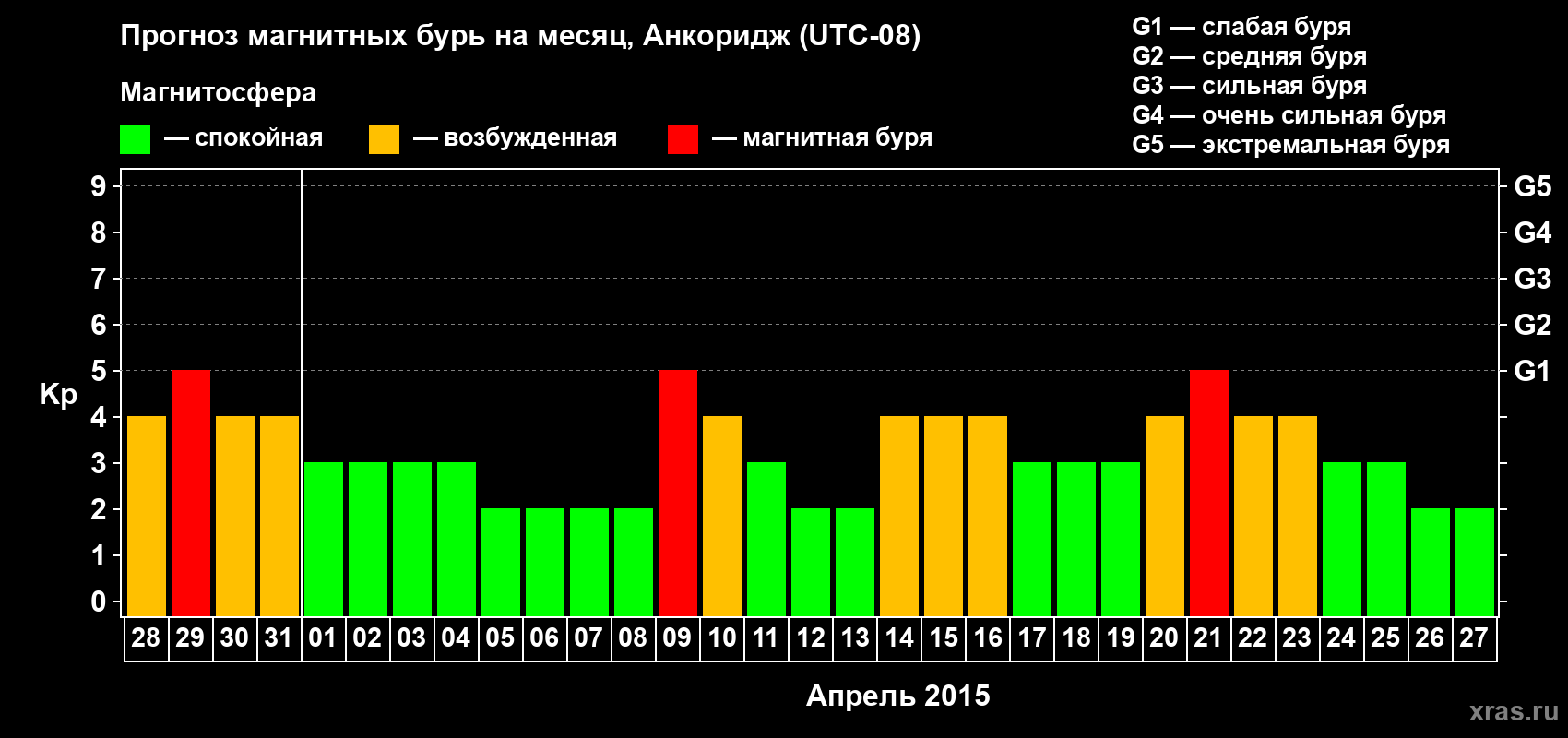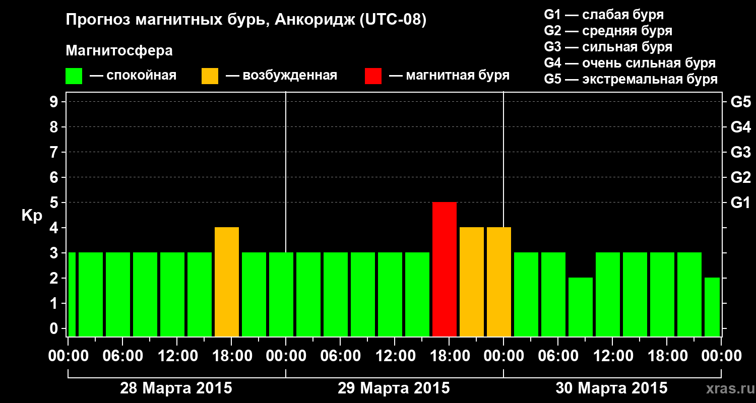 Прогноз магнитных бурь в Анкоридже — 28 марта 2015 года