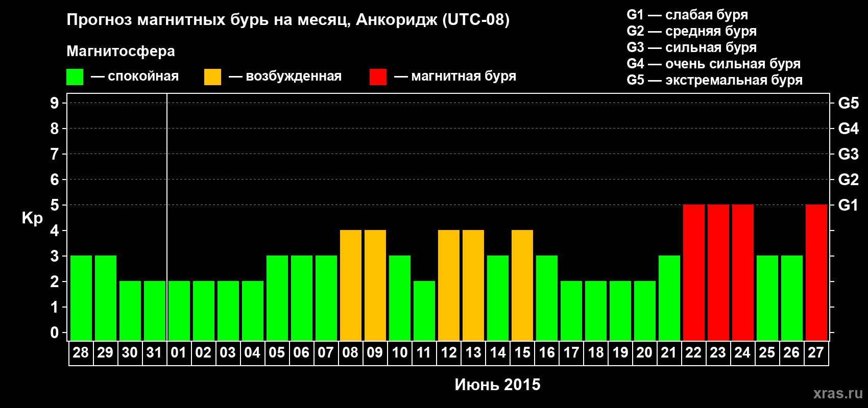 Прогноз магнитных бурь в Анкоридже — 28 мая 2015 года