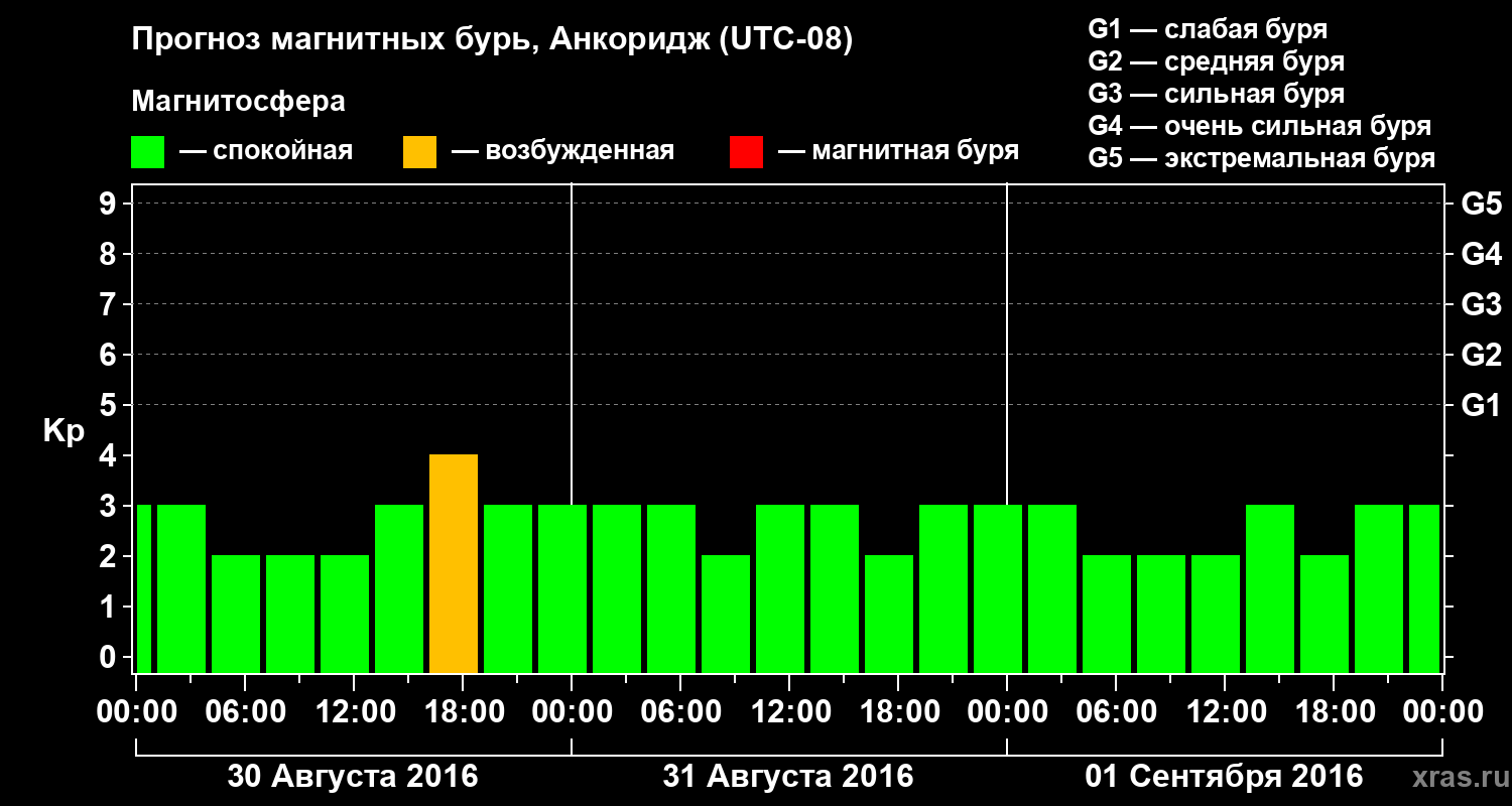 Прогноз магнитных бурь в Анкоридже — 30 августа 2016 года