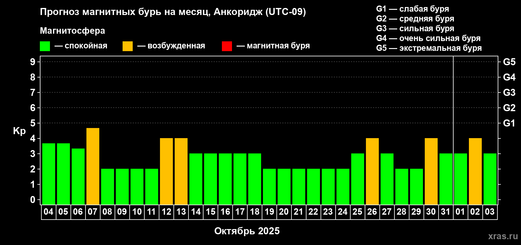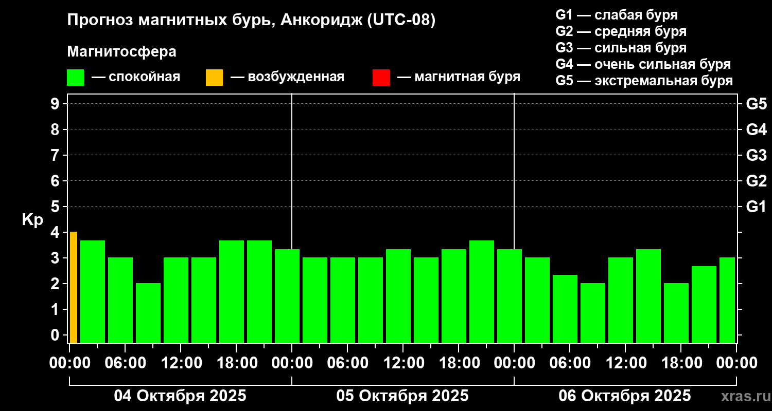 Прогноз магнитных бурь в Анкоридже — 4 октября 2025 года