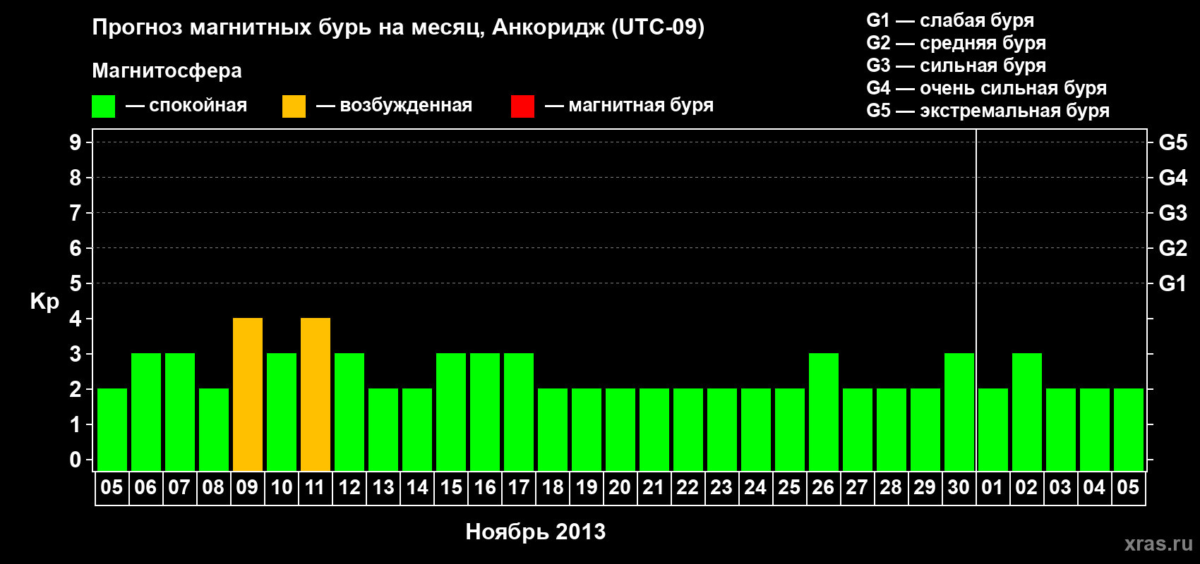 Прогноз магнитных бурь в Анкоридже — 5 ноября 2013 года