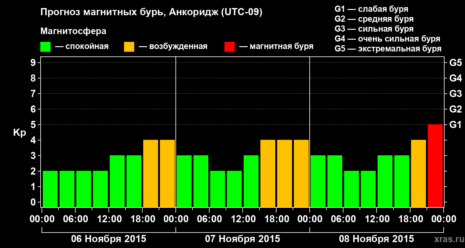 Прогноз магнитных бурь в Анкоридже — 6 ноября 2015 года