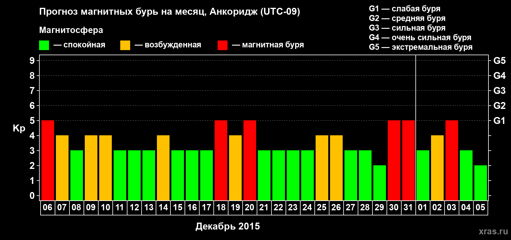 Прогноз магнитных бурь в Анкоридже — 6 декабря 2015 года