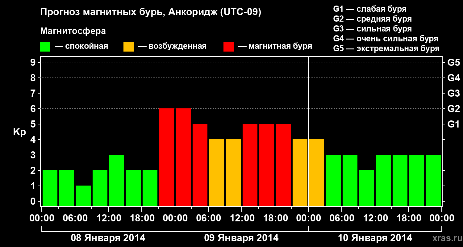 Прогноз магнитных бурь в Анкоридже — 8 января 2014 года
