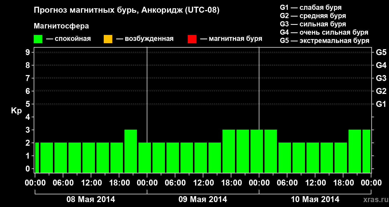 Прогноз магнитных бурь в Анкоридже — 8 мая 2014 года