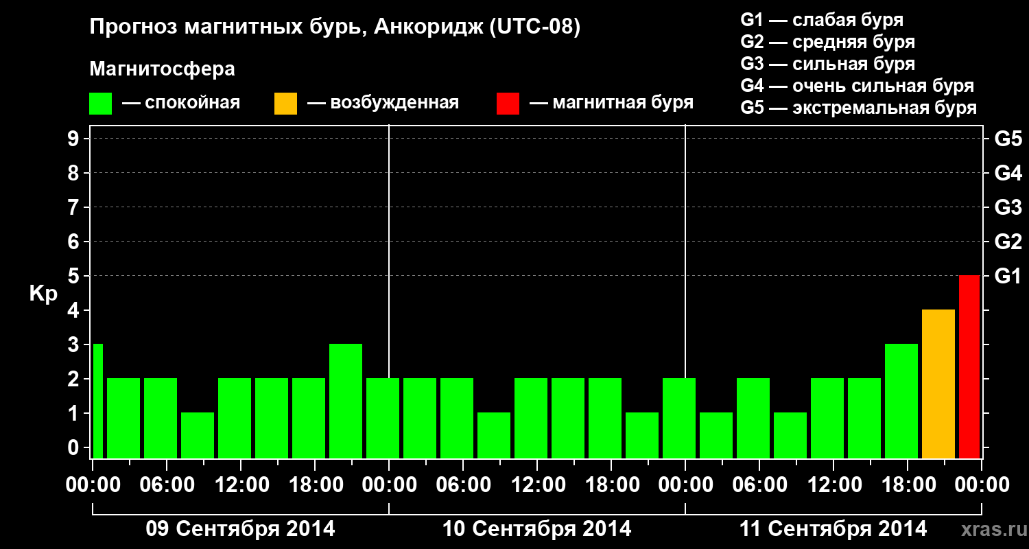 Прогноз магнитных бурь в Анкоридже — 9 сентября 2014 года