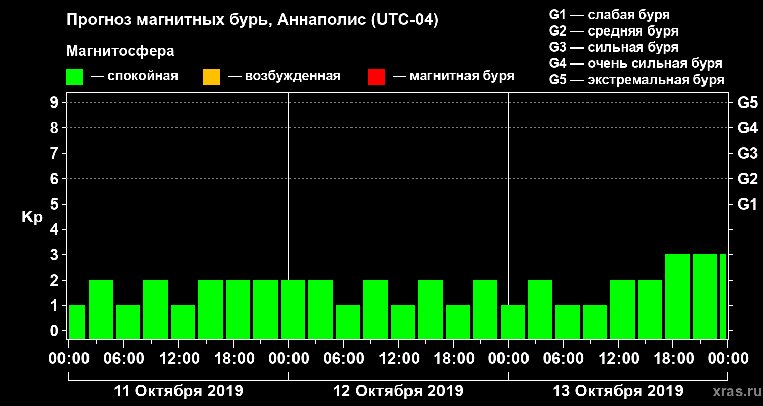 Прогноз магнитных бурь в Аннаполисе — 11 октября 2019 года