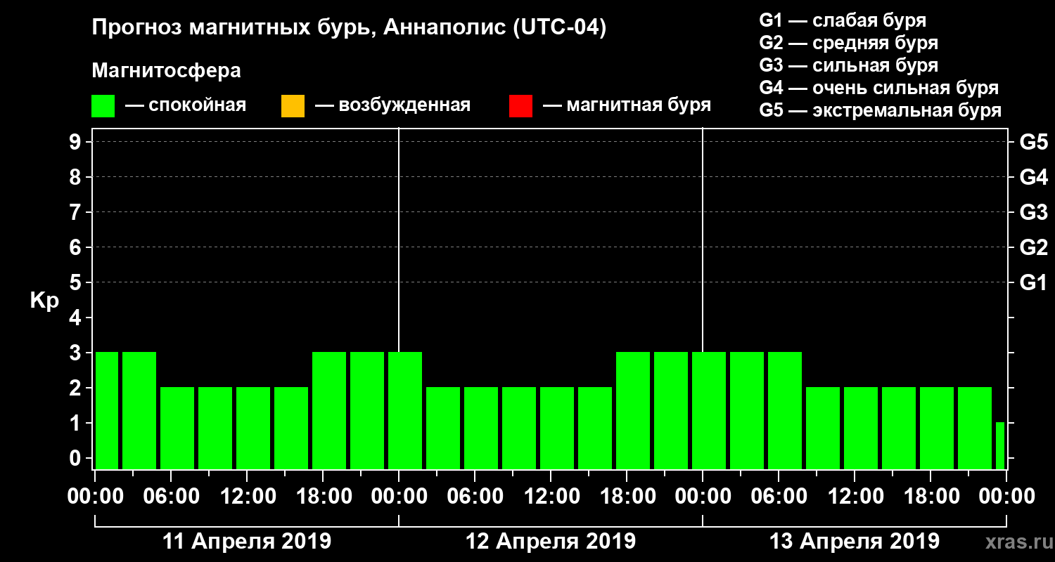 Прогноз магнитных бурь в Аннаполисе — 11 апреля 2019 года