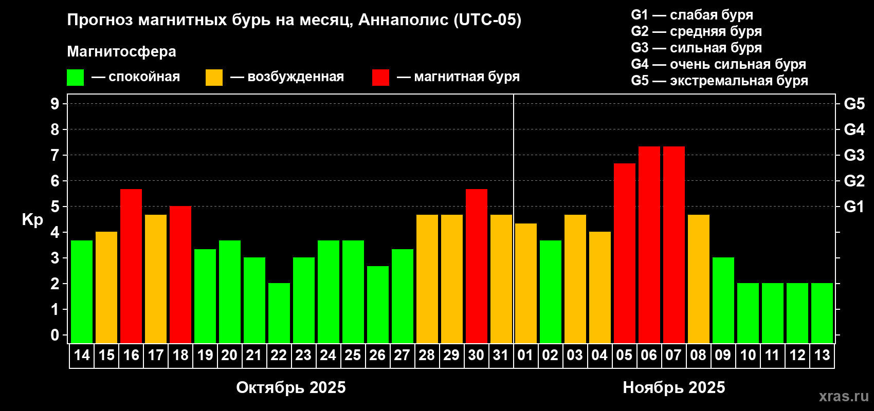Прогноз магнитных бурь в Аннаполисе — 14 октября 2025 года